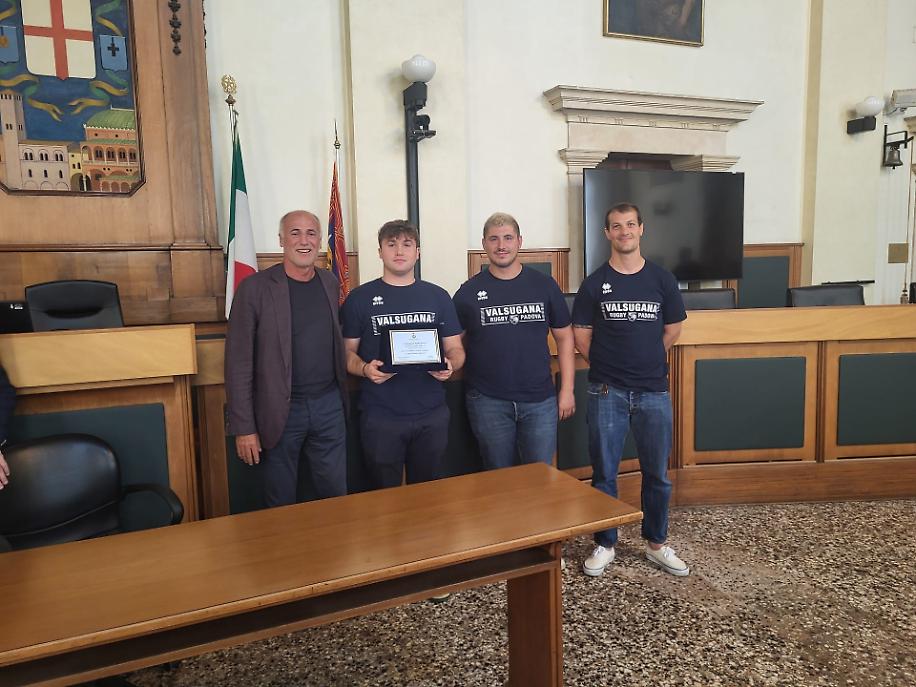 È stata una mattinata di celebrazioni e orgoglio sportivo quella andata in scena a Palazzo Moroni venerdì 20 giugno, dove l’assessore allo sport Diego Bonavina ha premiato atleti, tecnici e dirigenti del Valsugana Rugby per gli straordinari risultati ottenuti nella stagione 2024-2025. Un’annata che entrerà negli annali del club padovano, culminata con il titolo italiano Under 18 e la promozione in Serie A1 della prima squadra maschile.