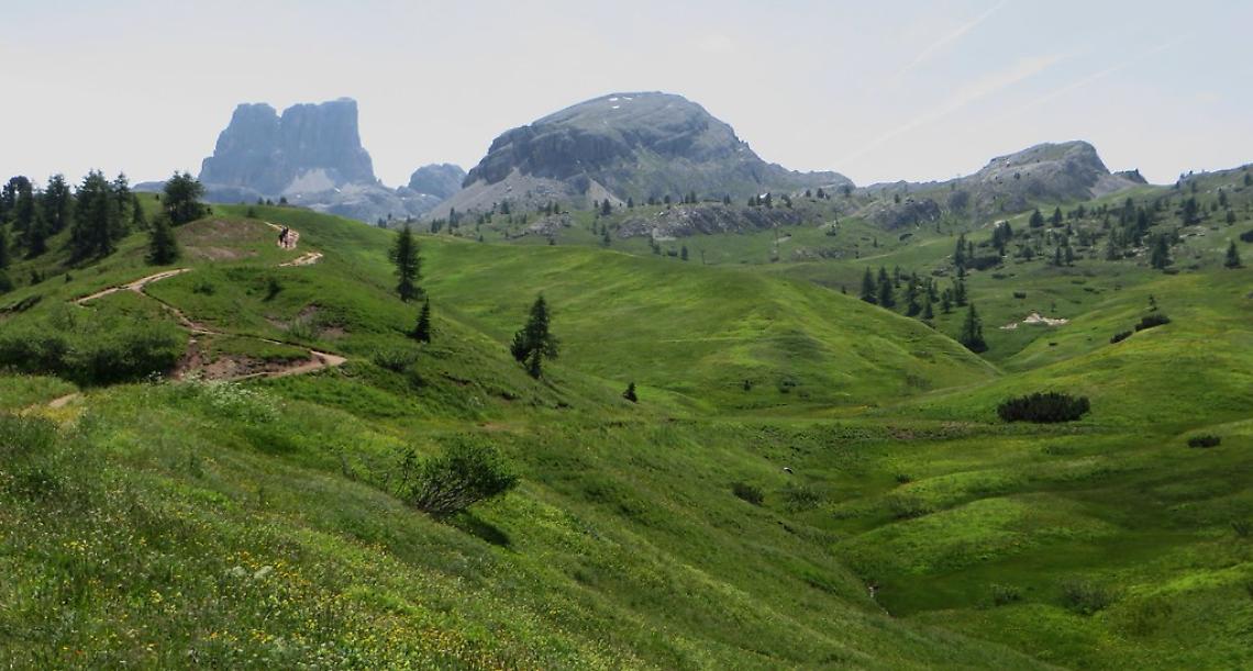 Accessibile anche ai meno esperti, il sentiero che porta al Rifugio Città di Fiume offre vedute panoramiche sul Pelmo e sulle Dolomiti circostanti. Perfetto anche con bambini.