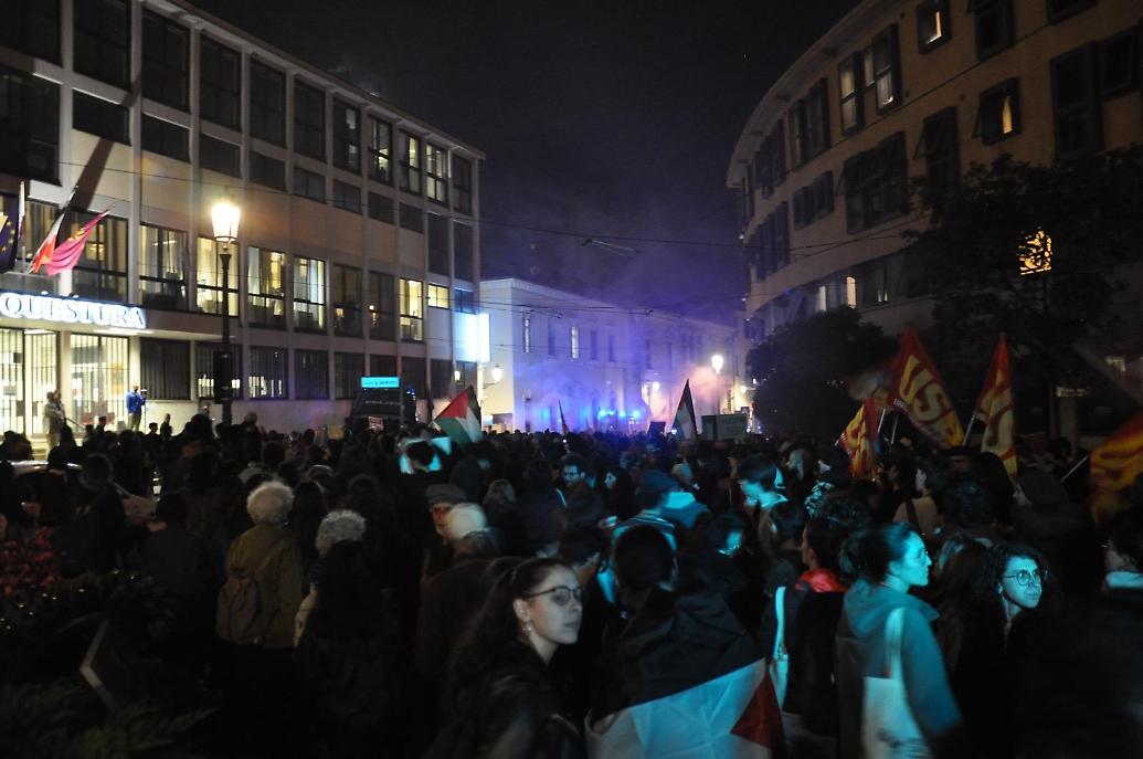 La manifestazione, iniziata alle 18 in Piazza Antenore, si è trasformata in un lungo corteo che ha attraversato il centro cittadino, bloccando tram e viabilità per 45 minuti, fino a raggiungere Riviera Ponti Romani, dove ha avuto luogo un presidio davanti alla Questura. Alcuni manifestanti hanno acceso fumogeni, altri hanno esposto cartelli, chiedendo la liberazione immediata degli attivisti fermati.