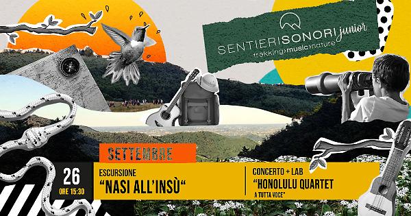Secondo appuntamento per l’apprezzata rassegna "Sentieri sonori junior" domenica 26 settembre alle 15.30 con ritrovo nel parcheggio del museo del Termalismo, sotto villa Draghi (via Fermi, Montegrotto Terme). Percorrendo il facile sentiero lungo villa Draghi, i bambini e le loro famiglie andranno alla scoperta di chi, furtivo, si nasconde tra gli alberi. Alcuni richiami aiuteranno partecipanti ad osservare gli uccelli o a conoscerne il canto, un piccolo gioco permetterà di capire come fanno gli uccellini a costruirsi il nido, quali forme e materiali scelgono.La proposta canora « A TUTTA VOCE » del gruppo Honolulu Quartet è un’attività di prima vocalità cantata, di gestione della propria intonazione di voce, di attenzione nei confronti delle diverse altezze musicali e delle diverse durate e dinamiche sonore, di controllo della propria respirazione; ci saranno giochi che sviluppano il rapporto fra singolo e gruppo, fra solista e coro, attività guidate e semilibere di improvvisazione e circle singing.Si richiede un abbigliamento adeguato al trekking (scarponi, cappello e occhiali da sole), un telo per sedersi a terra, mascherina e gel disinfettante. Si può tranquillamente portare in passeggiata il proprio animale domestico. La partecipazione è gratuita, fino a esaurimento dei posti da prenotare su sentiersisonori.it. L'evento si terrà anche in caso di maltempo: i laboratori si svolgeranno al coperto.Sentieri Sonori Junior è organizzato dall’associazione Play, con il patrocinio e il contributo del Comune di Montegrotto Terme.