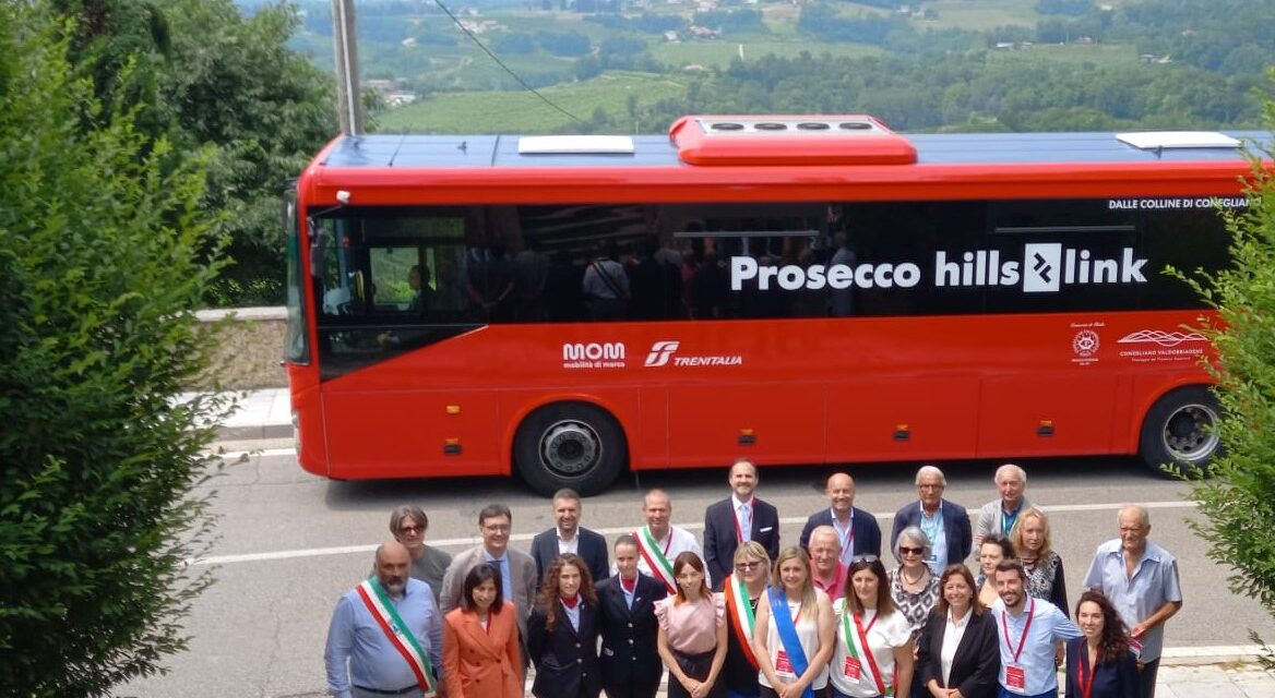 “Questo link ferro-gomma e segno della volontà di valorizzare ulteriormente le Colline del Prosecco Patrimonio dell’Umanità Unesco all’insegna della sostenibilità. È un nuovo servizio pensato per essere offerto a quel milione di turisti che arriverà entro i prossimi cinque o sei anni. Una vera sfida per quei territori che si preparano a vivere non più soltanto di agricoltura ma anche di turismo”. Con queste parole il Presidente della Regione del Veneto, Luca Zaia, ha inaugurato oggi a Conegliano (Treviso) il nuovo servizio “Prosecco hills link” - realizzato daMobilità di Marca e Trenitalia in collaborazione con Associazione Patrimonio Colline Conegliano Valdobbiadene e Consorzio di Tutela Prosecco Conegliano Valdobbiadene – che consentirà dal primo luglio, nei week end, di raggiungere in autobus a basso impatto ambientale la ormai nota meta, arrivando in treno a Conegliano e percorrendo un itinerario segnato da tappe e fermate tra spettacolari paesaggi. All’inaugurazione sono intervenuti la vicepresidente della Regione e assessore ai Trasporti, Elisa De Berti, il direttore regionale di Trenitalia, Ivan Aggazio, il presidente di MOM, Giacomo Colladon, il primo cittadino di Conegliano, Fabio Chies, la presidente dell’associazione Patrimonio Colline Conegliano Valdobbiadene, Marina Montedoro, quella del Consorzio Tutela Prosecco Conegliano Valdobbiadene, Elvira Bortolomiol, la vicepresidente della Provincia, Martina Bertelle, insieme a numerosi sindaci del territorio e altri rappresentanti delle Istituzioni.