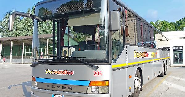 Una vettura di Dolomitibus, il principale provider di servizi di trasporto pubblico nella provincia