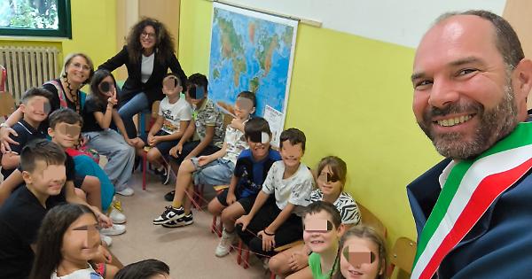 Il sindaco Bortolato con una classe della scuola elementare C. Collodi