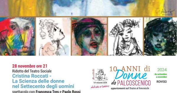 Giovedì 28 novembre 2024, alle 21.00, il Ridotto del Teatro Sociale di Rovigo ospiterà la prima assoluta dello spettacolo “Cristina Roccati la Scienza delle donne nel Settecento degli uomini”, prodotto da Minimiteatri. La drammaturgia e la regia di Letizia Piva, con Francesca Tres e Paolo Rossi sul palco, daranno vita alla storia di Cristina Roccati, la prima scienziata rodigina che, nel 1751, divenne la terza donna al mondo a laurearsi in fisica all'Università di Bologna.