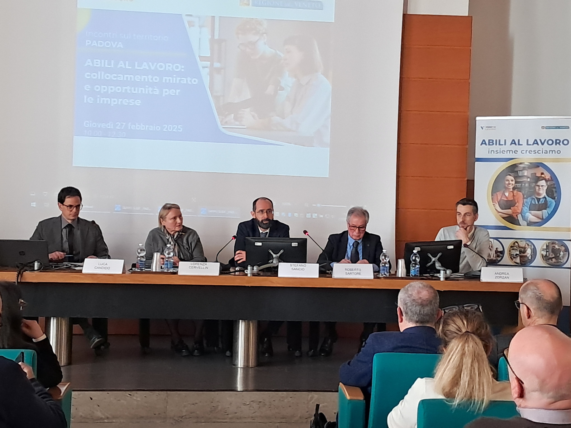 Questa mattina, presso la Camera di Commercio di Padova, si è tenuto il secondo incontro del ciclo “Abili al Lavoro: collocamento mirato e opportunità per le imprese”, promosso dalla Regione del Veneto e da Veneto Lavoro. L’evento ha avuto lo scopo di sensibilizzare datori di lavoro e professionisti sulle opportunità di inclusione lavorativa per le persone con disabilità, illustrando anche i dati occupazionali nel territorio.