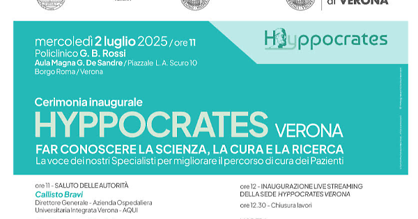 Si terrà domani, mercoledì 2 luglio, alle ore 11, nell’aula De Sandre del Policlinico G.B. Rossi dell’Ospedale Borgo Roma di Verona, la cerimonia inaugurale di Hyppocrates. All’evento parteciperà l’assessore alla Sanità e al Sociale della Regione Veneto, Manuela Lanzarin.