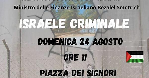 Si terrà domenica 24 luglio, alle ore 11, in Piazza dei Signori a Verona, la manifestazione intitolata "Israele Criminale", promossa dal comitato Verona per la Libertà insieme alle associazioni Popolo Veneto e Sindacato Libero. L’iniziativa nasce come forma di protesta contro le recenti dichiarazioni e azioni del governo israeliano in Cisgiordania e a Gaza. In particolare, le parole del Ministro israeliano Smotrich, che ha parlato di cancellare l’idea di uno Stato Palestinese, e del Premier Netanyahu, che ha annunciato l’inizio dell’occupazione di Gaza City.