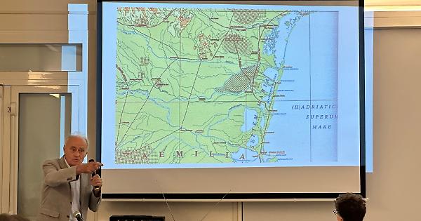 Nell’altro, il geologo e archeologo Raffaele Peretto ha tenuto la conferenza “Ripercorrendo antiche romee tra Adige e Po: transiti pellegrinali in Polesine”, trattando delle vie di pellegrinaggio che attraversavano il Delta e il Polesine. Lo studioso ha spiegato come la nostra Romea si innesti su antichi percorsi quali la via dell’ambra (di tremila anni fa) e la romana via Popilia (con la diramazione costiera verso Clodia), utili a convogliare verso Roma e il Mediterraneo commerci, eserciti e, nell’era cristiana, i pellegrini. Peretto ha saputo coniugare rigore scientifico e narrazione divulgativa, rendendo accessibili a tutti i presenti i complessi intrecci storici tra geografia e fede. Il pubblico ha seguito con attenzione anche le ricostruzioni cartografiche proiettate durante la serata, che hanno permesso di visualizzare l’evoluzione dei percorsi attraverso i secoli.