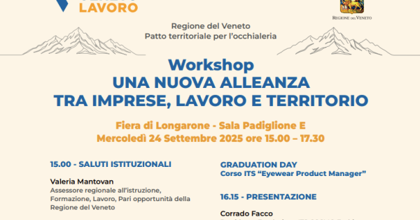 Il distretto dell’occhialeria bellunese si prepara a confrontarsi con le nuove sfide del mercato globale. Domani, mercoledì 24 settembre, alla Fiera di Longarone, si terrà il workshop intitolato “Una nuova alleanza tra imprese, lavoro e territorio”, un momento di confronto dedicato a imprese, sindacati e istituzioni per definire strategie e prospettive future. L’incontro inizierà alle 15, nella Sala Padiglione E, e prevede anche la consegna dei diplomi agli studenti del corso ITS Eyewear Product Manager.