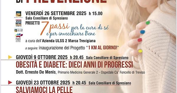 Spresiano si prepara a vivere un autunno all’insegna della salute. Per il quarto anno consecutivo torna infatti l’iniziativa “Autunno di Prevenzione”, promossa dal Comune in collaborazione con l’Ulss 2 Marca trevigiana, con un ricco programma di incontri aperti alla cittadinanza.