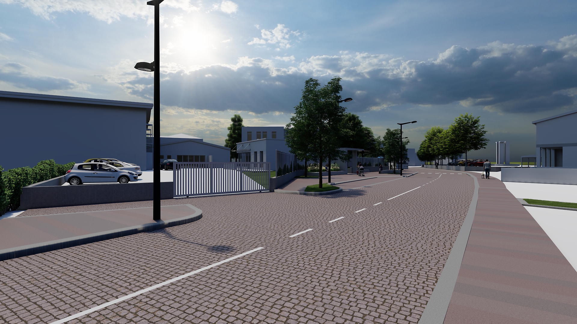 Il piano prevede la realizzazione di marciapiedi più ampi e sicuri su entrambi i lati della strada, la creazione di una piccola piazza pedonale davanti all’ingresso della scuola per migliorare l’accesso degli alunni e la gestione degli accompagnatori, con un’area di sosta temporanea dedicata. Sarà inoltre ripensata la fermata dell’autobus, che avrà una nuova pensilina, e sarà potenziata l’illuminazione pubblica. Completano l’intervento percorsi ciclo-pedonali fino al vicino fiume Zero e un arredo urbano rinnovato, arricchito da nuove piante e spazi di sosta.