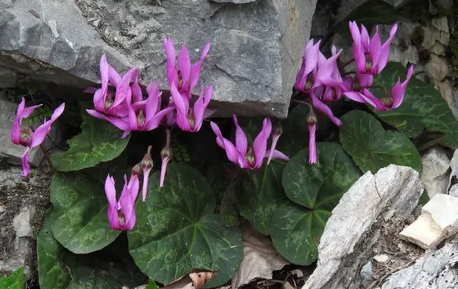 Nei boschi dei Colli Euganei, tra le province di Padova e Vicenza, il sottobosco si accende di rosa e viola grazie ai ciclamini autunnali (Cyclamen hederifolium). Spontanei e delicati, crescono tra le foglie secche, creando un contrasto suggestivo con il giallo e l’arancio del foliage. Non è raro vederli durante le passeggiate nei sentieri del Parco Regionale, dove la fioritura si accompagna a castagneti, vigneti e panorami mozzafiato.