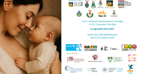 Mai così ricca di iniziative, la Settimana dell’allattamento dell’Ulss 3 Serenissima apre le sue porte a mamme, bimbi, papà, fratelli, nonni e caregiver dal 6 all’11 ottobre. Quest’anno più di ottanta eventi gratuiti invadono il territorio veneziano, dalle passeggiate ai laboratori, dalle letture musicali alle improvvisazioni teatrali, toccando ospedali, consultori, biblioteche, teatri, ville storiche e parchi di Mestre, Chirignago, Marghera, Mirano, Dolo, Chioggia e molte altre località.