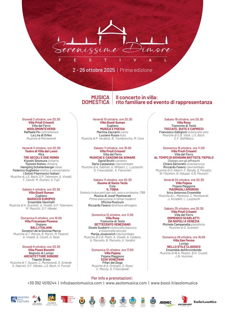 Il Festival è promosso da Asolo Musica – Veneto Musica, con la direzione artistica di Vincenzo De Vivo, il sostegno del Ministero della Cultura, Regione del Veneto e vari partner istituzionali e privati. Con il patrocinio dell’Istituto Regionale Ville Venete e di numerosi comuni della regione.