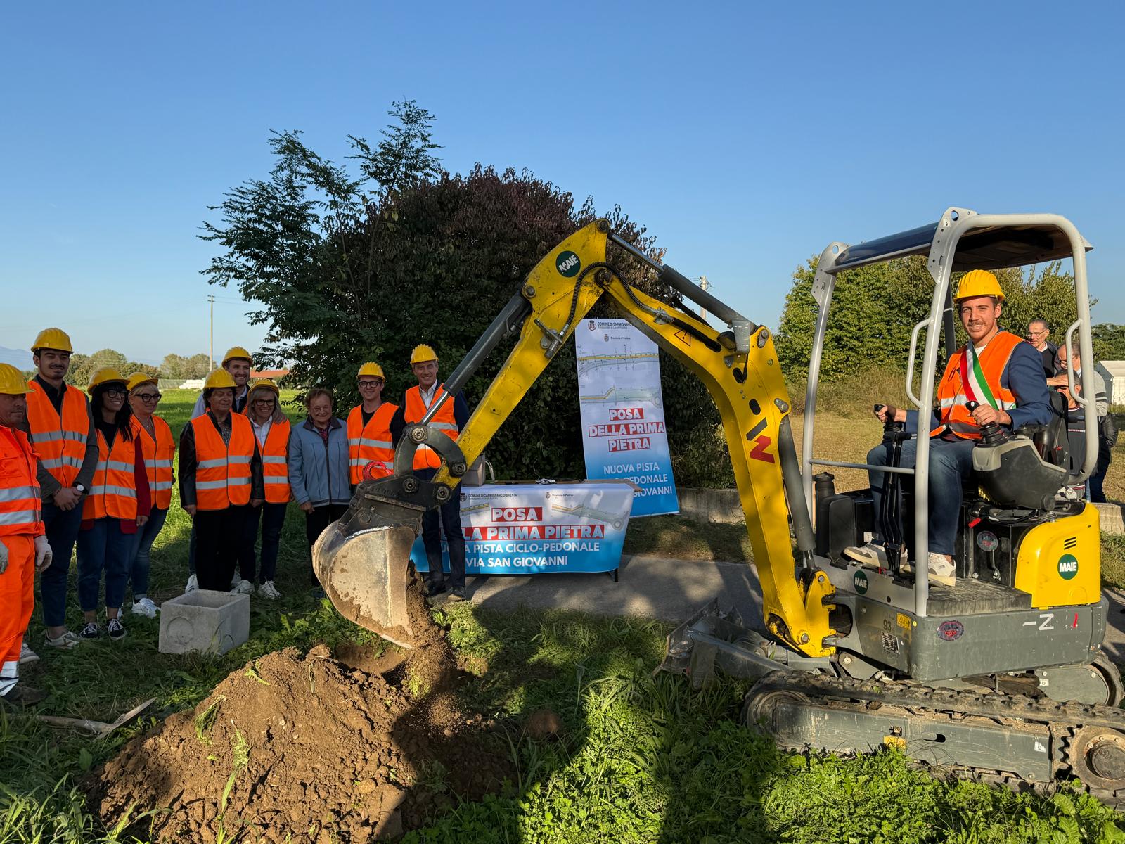 Con la posa simbolica della prima pietra e l’inserimento di una capsula del tempo, ieri è stato inaugurato l’inizio dei lavori per la nuova pista ciclopedonale lungo la S.P.16 – San Giovanni, un’infrastruttura strategica che collegherà il centro del paese con la zona più a nord del territorio comunale.