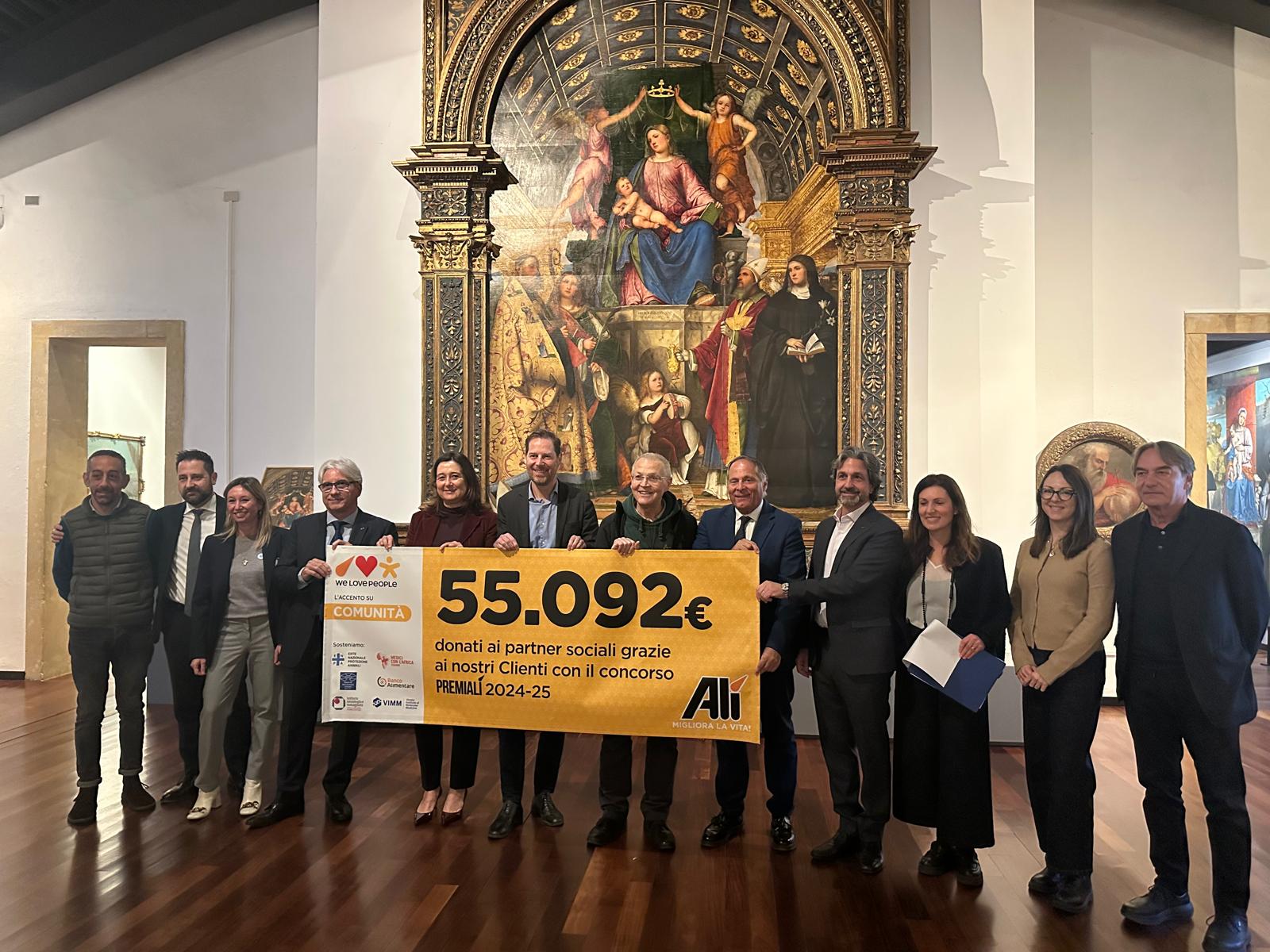 Ammonta a 55.092 euro la somma raccolta attraverso il concorso PremiAlì 2024-2025, grazie alla generosità dei clienti e al raddoppio dell’importo da parte dell’azienda. I fondi sono stati destinati a sei realtà che operano nel sociale e nella ricerca: Medici con l’Africa CUAMM, Istituto Oncologico Veneto (IOV), Istituto Oncologico Romagnolo (IOR), Fondazione Ricerca Biomedica Avanzata – VIMM, Banco Alimentare del Veneto ed ENPA.