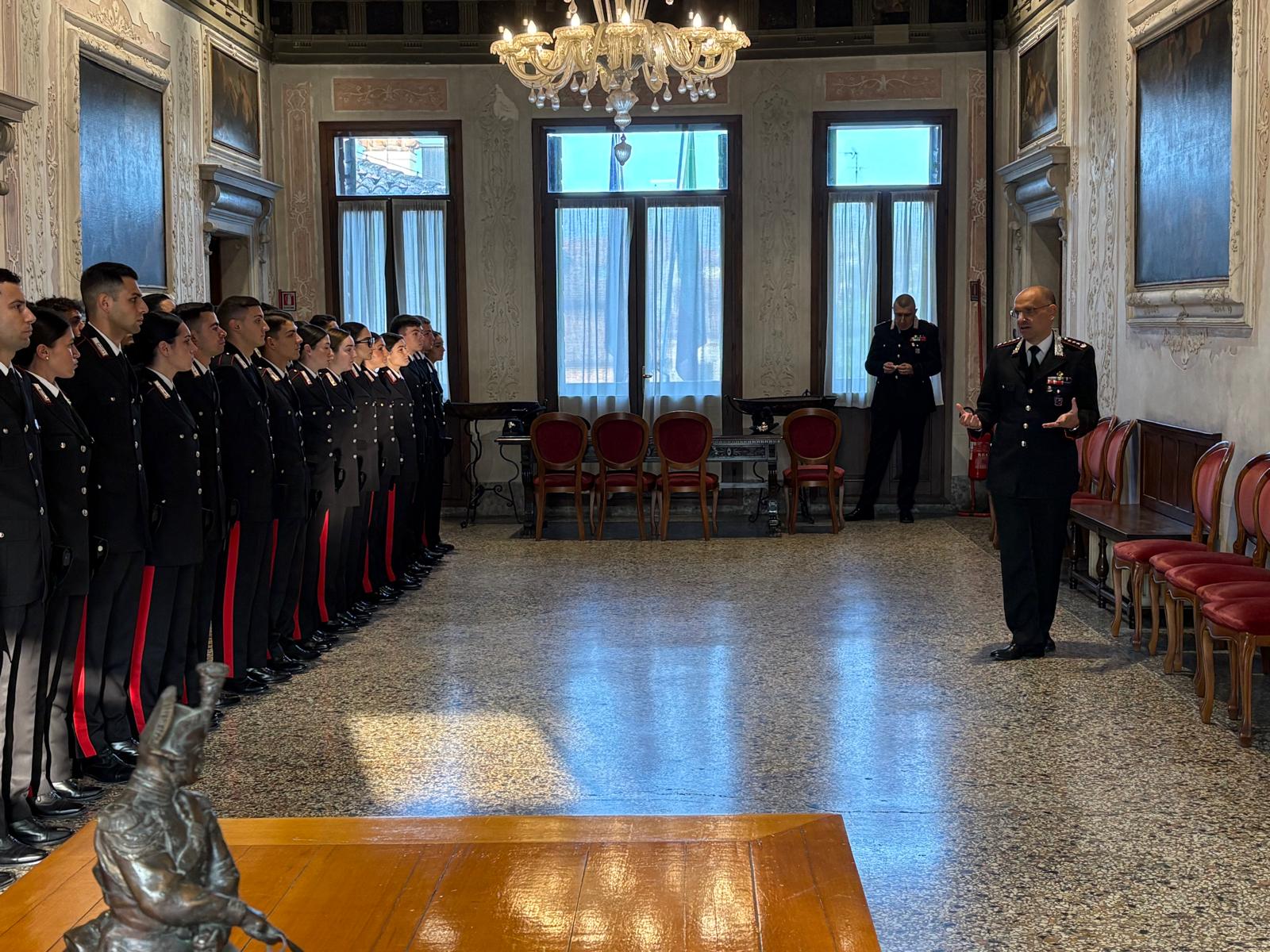 Questa mattina, presso la storica cornice di Palazzo Zuccareda, sede del Comando Provinciale Carabinieri di Treviso, il Colonnello t. ISSMI Massimo Ribaudo ha accolto i nuovi Carabinieri neo-promossi del 144° Corso, recentemente assegnati ai reparti della Marca trevigiana. L'incontro, che ha segnato un importante momento di aggiornamento e saluto, è stato occasione per ribadire l'importanza del rafforzamento del dispositivo di sicurezza sul territorio.