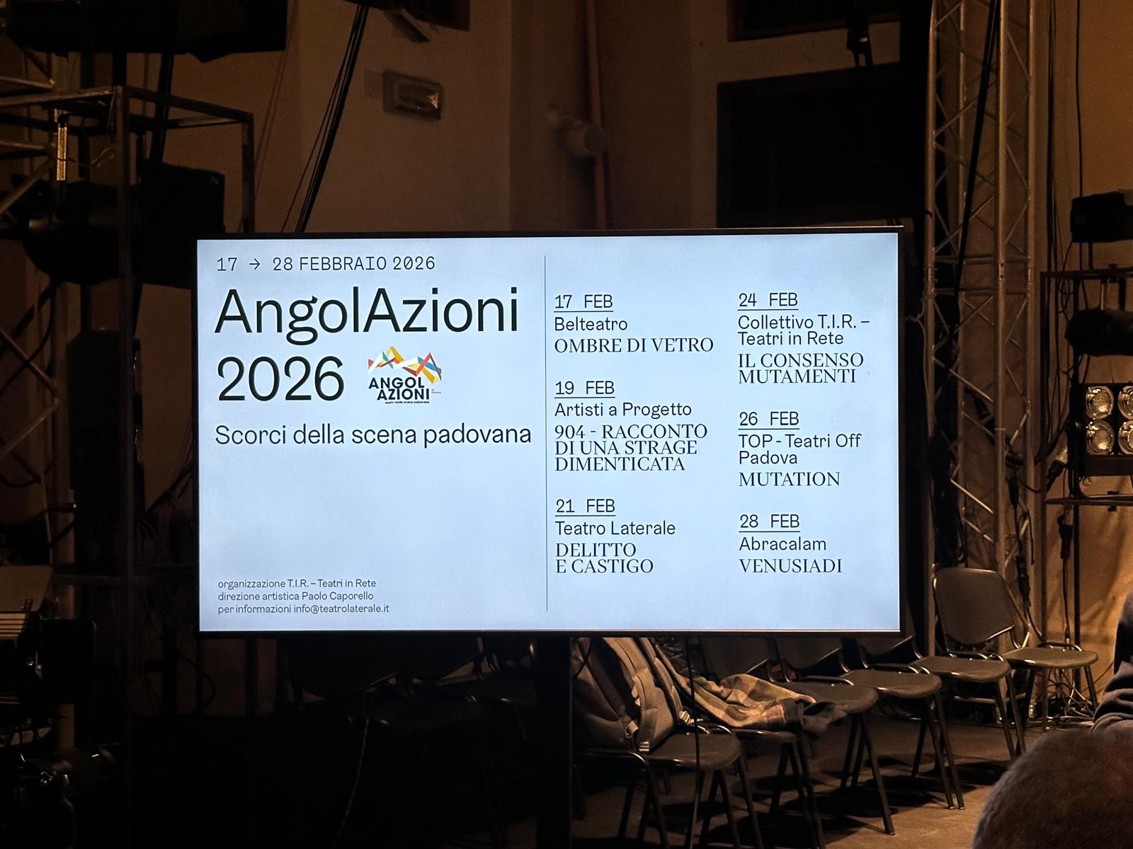 Per Paolo Caporello, curatore di AngolAzioni – Scorci dalla scena padovana, la nuova edizione esplora il tema dei mutamenti. «Le sette compagnie coinvolte affrontano il cambiamento in tutte le sue declinazioni: climatico, sociale, individuale. Come Teatro Laterale presenteremo un Delitto e Castigo che rappresenta pienamente l’idea di trasformazione. Inoltre questa edizione ospiterà studi teatrali, e il vincitore del Premio Off potrà realizzare lo spettacolo completo grazie al sostegno del Teatro Stabile».