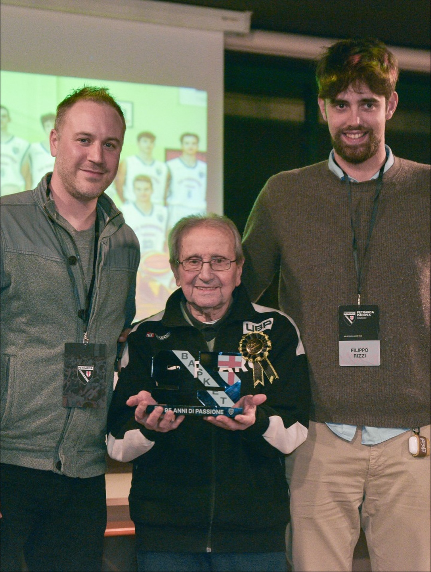 Non sono mancati i riconoscimenti ufficiali: la FIP ha inviato un regalo speciale accompagnato da una lettera del presidente Gianni Petrucci; la FIP Veneto, rappresentata dal vicepresidente Flavio Camporese, ha consegnato un premio a nome del comitato regionale; infine, il Petrarca Basket ha espresso la propria gratitudine per una vita dedicata completamente alla pallacanestro e ai valori che ne costituiscono l’essenza.