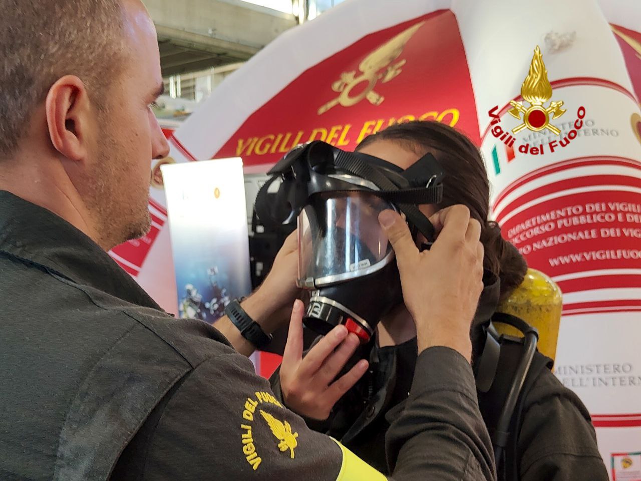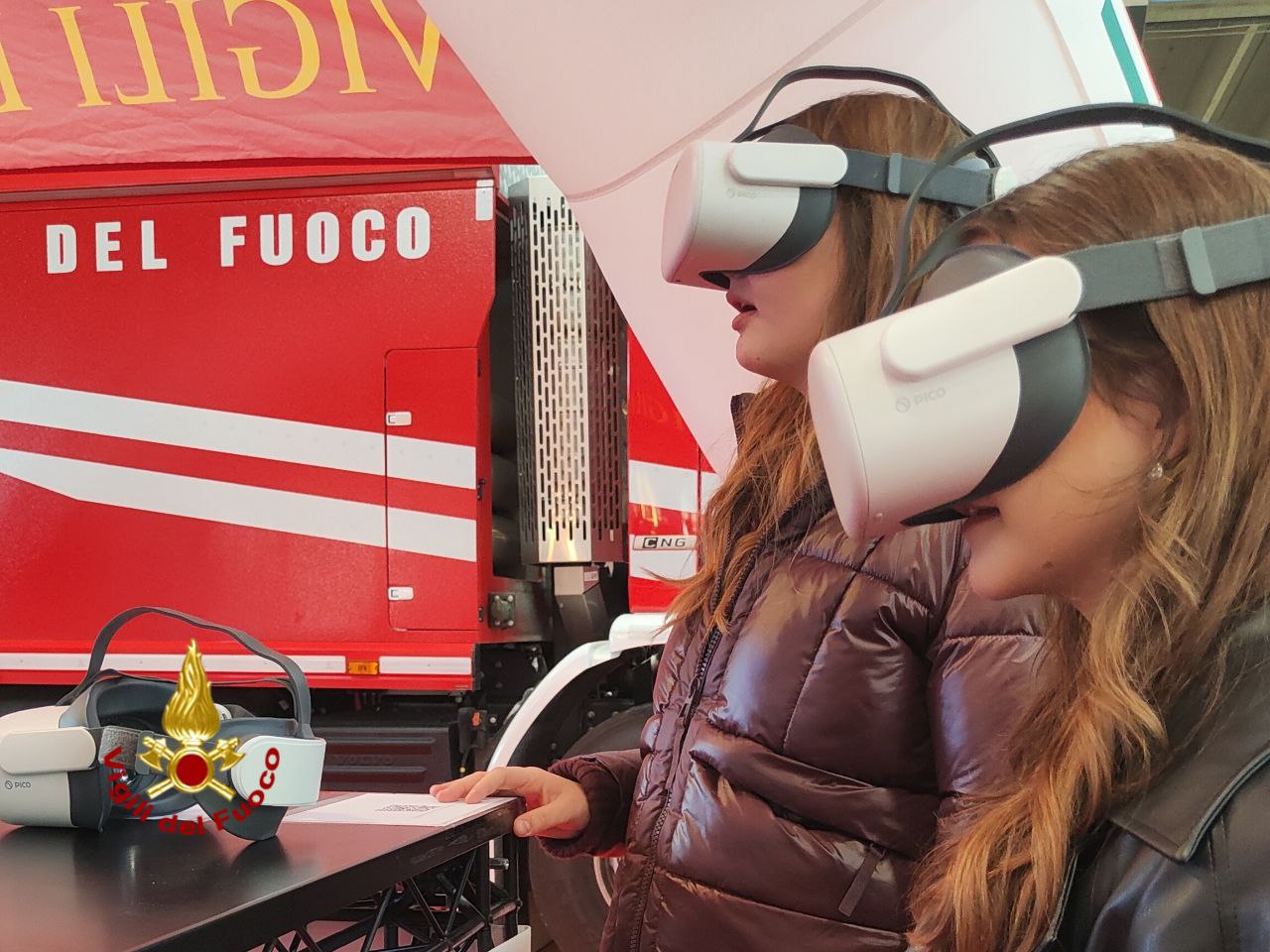 Un altro elemento che ha riscosso grande interesse è stata l’area interattiva dedicata alla realtà virtuale. Grazie a visori speciali, i giovani hanno potuto immergersi in simulazioni di attività di addestramento e soccorso dei Vigili del Fuoco, vivendo in prima persona l’emozione e la responsabilità di un intervento. Inoltre, i ragazzi hanno avuto l'opportunità di indossare il completo da intervento, l'elmo e l'autoprotettore, e di salire sulla famosa scala italiana, naturalmente con tutte le precauzioni di sicurezza necessarie.