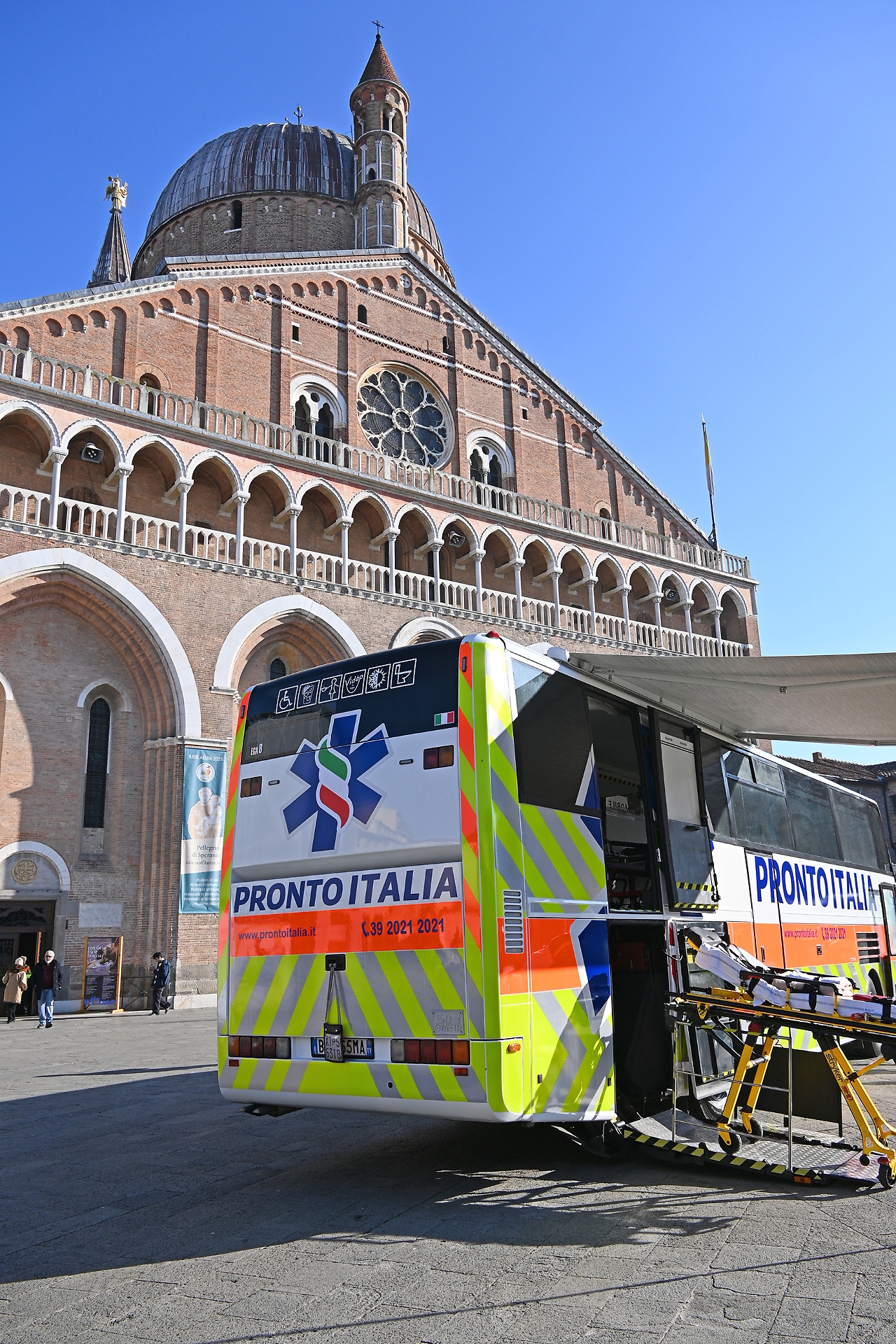 È stato presentato questa mattina nello Studio Teologico della basilica di Sant’Antonio il nuovo progetto di un autobus trasformato in presidio sanitario mobile, destinato a servire i Comuni dei Colli Euganei e altre zone del territorio in cui sia necessario fornire assistenza medica o interventi d’emergenza. L’iniziativa è promossa dall’associazione Pronto Italia ODV, da tempo attiva a livello nazionale nella fornitura di servizi sanitari di alto livello.
