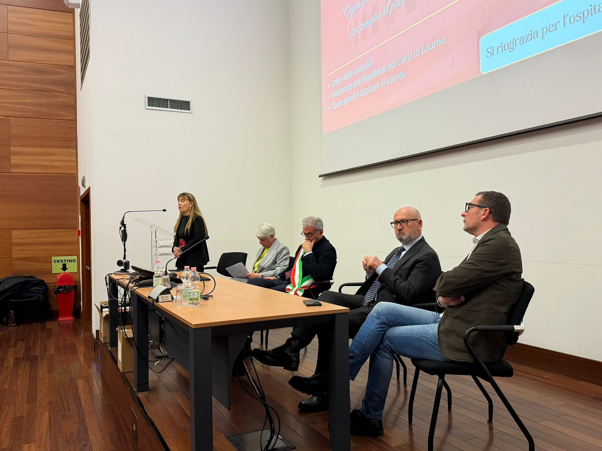 Si è svolta oggi la cerimonia di consegna dei diplomi agli studenti del polo universitario delle professioni sanitarie di Vicenza che hanno discusso la tesi nella sessione autunnale. L’evento ha coinvolto complessivamente 103 neolaureati: 54 in Infermieristica, 12 in Ostetricia e Ginecologia, 21 in Fisioterapia, 16 in Tecniche di Radiologia Medica per Immagini e Radioterapia e 26 infermieri che hanno completato il Master Infermiere Specialista in Assistenza alla Famiglia e alla Comunità.