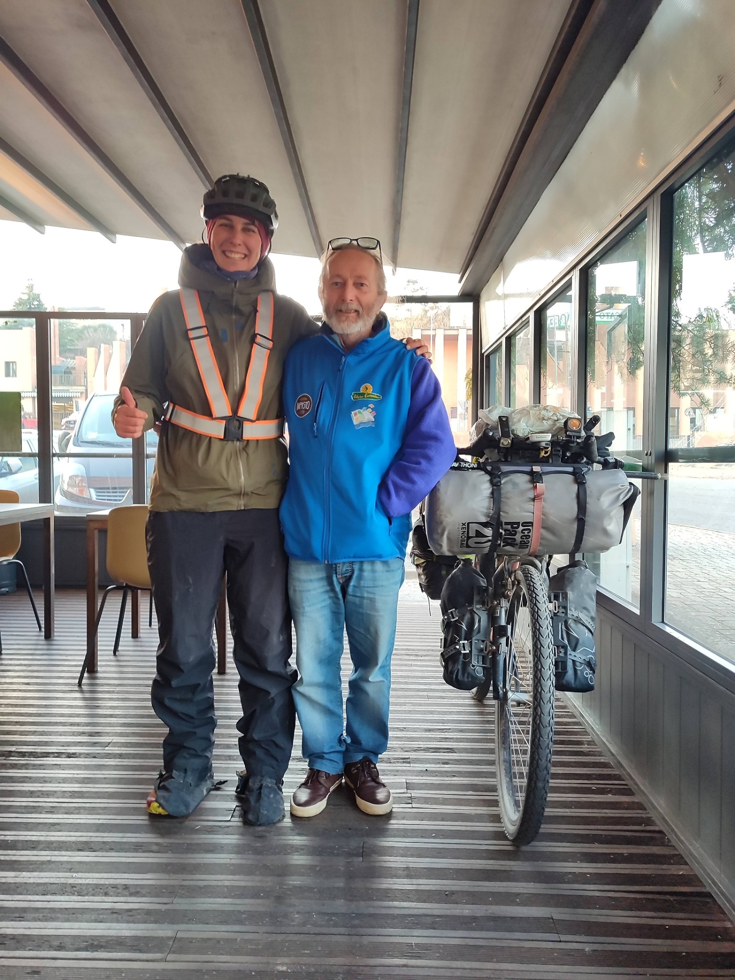 Partita il 13 gennaio 2024 dalla Dogana Veneta, con pochi bagagli e tanta determinazione, Monica, ingegnere energetico e guida ambientale, ha trasformato la sua passione per la bicicletta in un viaggio di solidarietà globale. Pedalando senza sosta tra continenti, la sua casa è stata il suo equipaggiamento, montato sulla bici, e le sue notti spesso trascorse in tenda, sotto il cielo stellato della Mongolia o nei parchi nazionali degli Stati Uniti. Ogni incontro, ogni sosta è stata un'opportunità per diffondere un messaggio di speranza e fratellanza, ospite di famiglie locali e in missioni dell'Operazione Mato Grosso in Sud America.