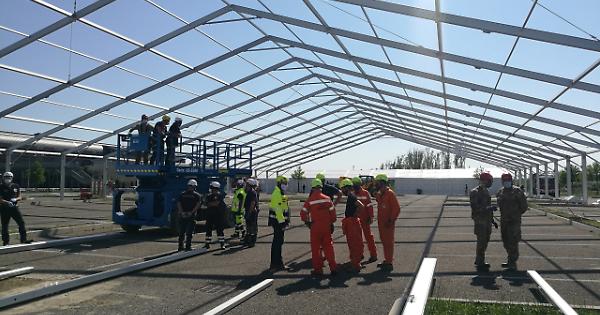 Coronavirus, l'ospedale da campo donato dal Qatar prende forma nel parcheggio del nosocomio di Schiavonia
