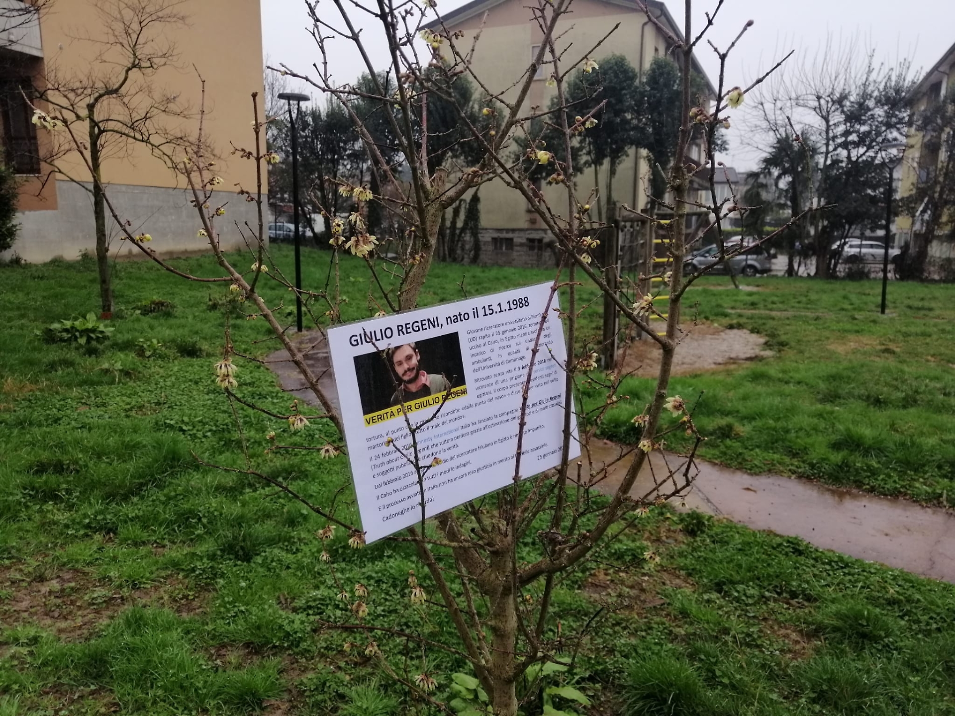 ieri, 12 febbraio, ottenuto il via libera dell'amministrazione comunale, è stato piantato un piccolo esemplare di Calicanto. La scelta non è casuale: i suoi fiori gialli richiamano il colore simbolo della campagna per la verità, mentre la fioritura invernale rappresenta la capacità di resistere al freddo e alle avversità.