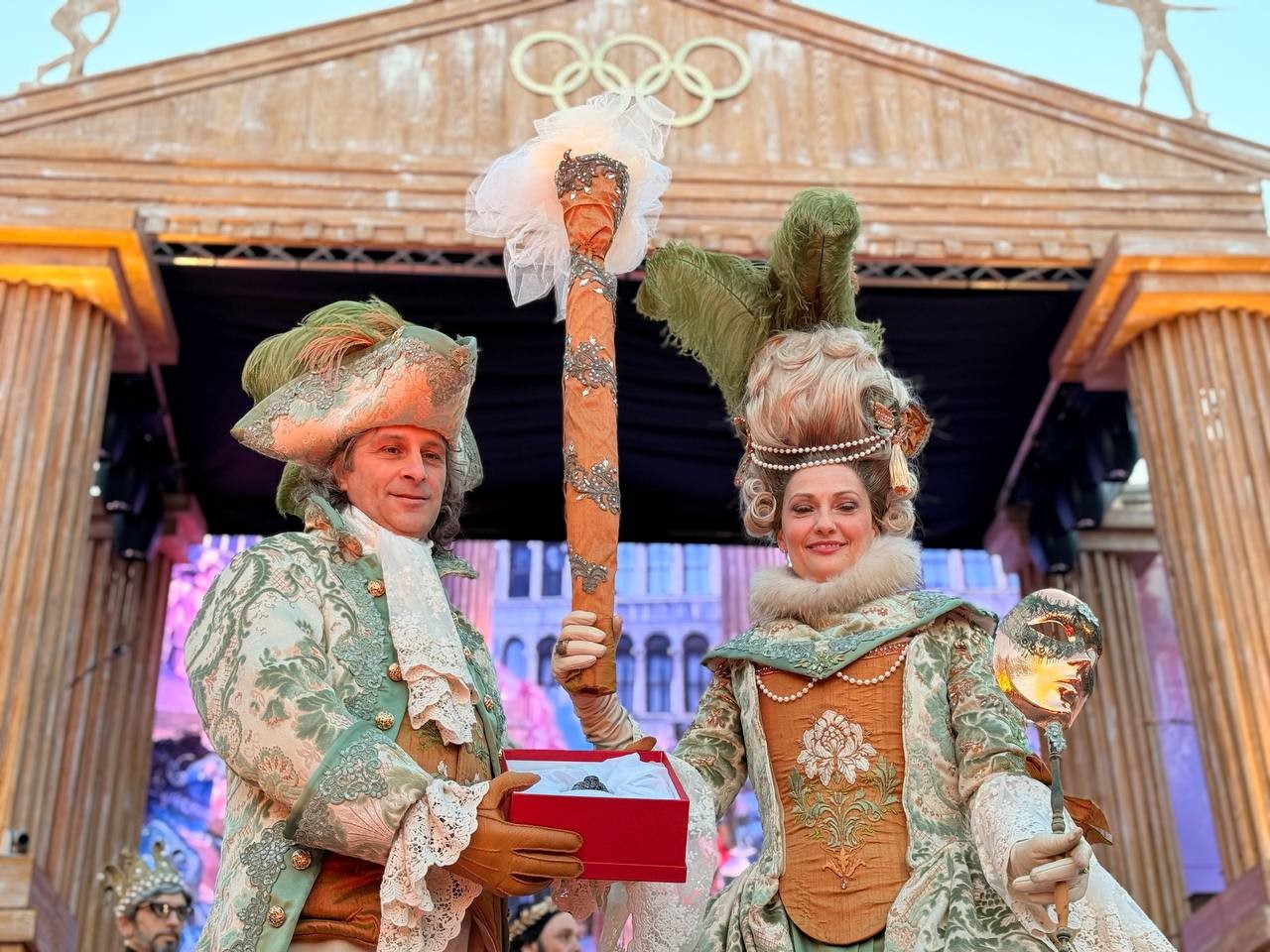 Tra applausi e flash dei fotografi, oggi in Piazza San Marco è stata incoronata la Maschera più Bella del Carnevale di Venezia 2026, nell’ambito del tema “Olympus – Alle origini del gioco”. A conquistare il primo premio è stato il gruppo internazionale di sette persone con la creazione intitolata “La corte dell’Elefante bianco”, portando un messaggio di interculturalità e condivisione proveniente da Inghilterra, Germania, Francia e Asia.