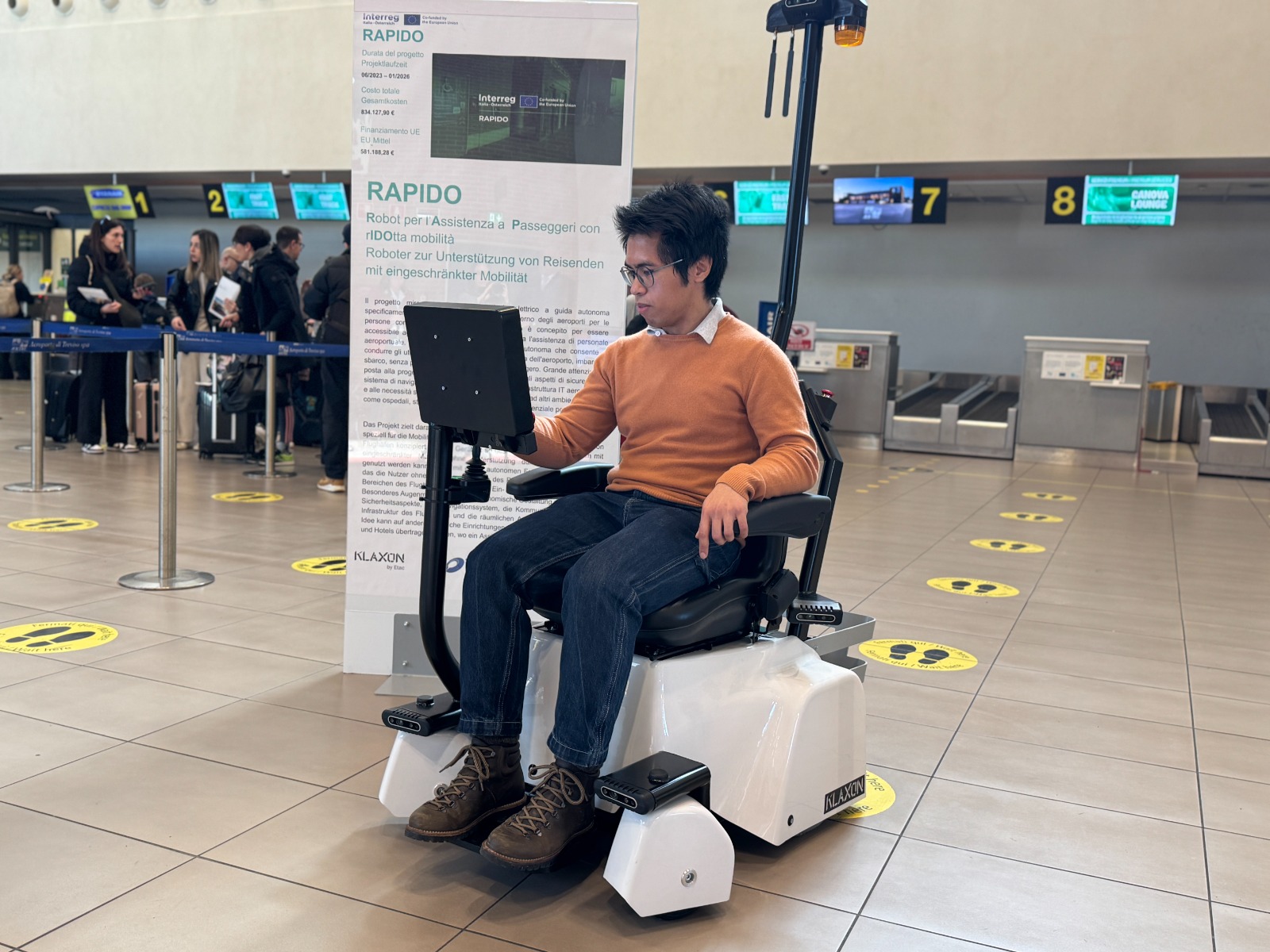 Il veicolo RAPIDO non solo migliora l’esperienza di viaggio dei passeggeri PRM, ma offre anche una soluzione efficiente che riduce il bisogno di intervento umano diretto, permettendo ai passeggeri di muoversi autonomamente all’interno dell’aeroporto, con la possibilità di fare sosta ai negozi e ai punti di ristoro.