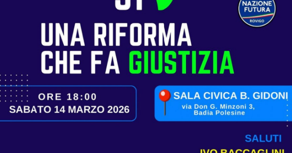 L’iniziativa punta a offrire ai cittadini un approfondimento tecnico sulla riforma costituzionale, con l’obiettivo di evitare che il referendum venga percepito soltanto come uno scontro politico. All’incontro interverranno anche l’avvocato Marco Petternella, Presidente della Camera penale di Rovigo, e l’onorevole Ciro Maschio, Presidente della Commissione Giustizia della Camera dei deputati. I saluti istituzionali saranno affidati a Valeria Mantovan, assessore regionale del Veneto, e a Ivo Baccaglini, consigliere provinciale di Rovigo. A moderare l’incontro sarà il senatore Bartolomeo Amidei.