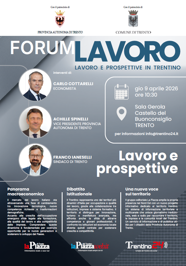 Al centro del dibattito ci saranno le trasformazioni del mercato del lavoro, dall'innovazione tecnologica alle nuove competenze, fino alle sfide demografiche che interessano il Trentino. Tra i partecipanti spiccano l'economista Carlo Cottarelli e rappresentanti istituzionali come il Vicepresidente della Provincia Autonoma di Trento Achille Spinelli e il sindaco di Trento Franco Ianeselli.