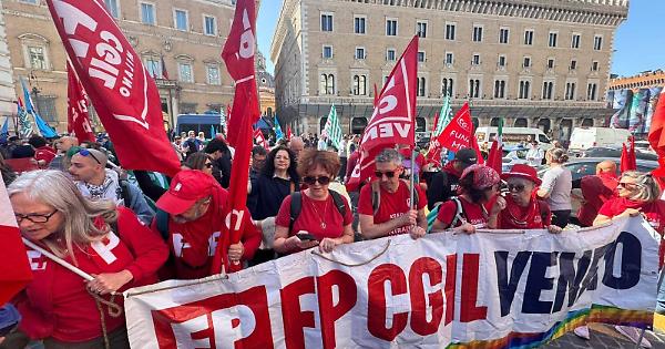 A Roma, in Piazza Santi Apostoli, si è svolta questa mattina la manifestazione nazionale delle lavoratrici e dei lavoratori della sanità privata e delle RSA, accompagnata da uno sciopero su tutto il territorio italiano indetto dalle sigle sindacali FP CGIL, CISL FP e UIL FPL.