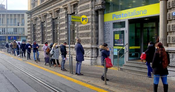 Pazientemente in fila alle Poste Italiane i padovani rispettano il distanziamento