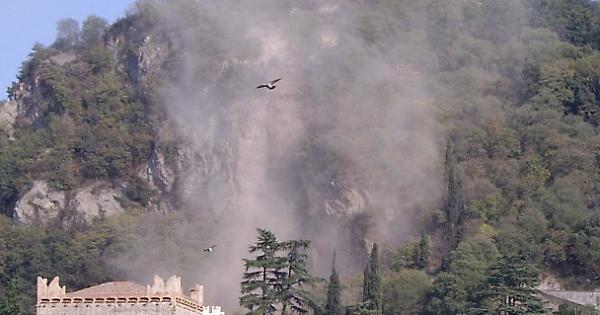 Il centro di Monselice invaso dal fumo per i lavori all'ascensore sulla Rocca.