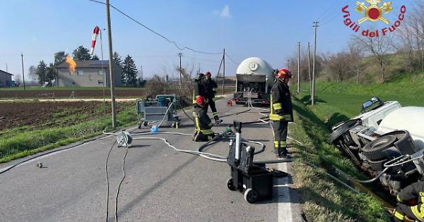 Poco prima delle 9, un camion-cisterna pieno di gas metano stava procedendo in direzione Noventa Vicentina: a quanto si apprende, una macchina gli si sarebbe affiancata e lo avrebbe superato nel rettilineo antistante la chiesetta. A causa delle dimensioni ridotte della carreggiata, entrambi i mezzi avrebbero effettuato una manovra brusca e sono finiti nel fosso.