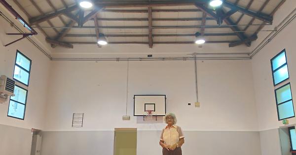 Contestualmente è stato avviato il risanamento delle murature della palestra e degli spogliatoi laterali, con la rimozione delle parti ammalorate e l’impiego di prodotti specifici per bloccare la risalita capillare dell’umidità, problema che da tempo comprometteva l’agibilità degli ambienti. Per rendere gli spazi più funzionali, contenere i costi e migliorare l’efficienza energetica, nella palestra principale è stata posata una doppia lastra in cartongesso resistente, distanziata dalla parete e rialzata dal pavimento in modo da favorire una corretta aerazione. A completamento, si è provveduto alla tinteggiatura dell’intero complesso, che comprende palestra grande, corridoi, spogliatoi e parte basamentale esterna, alla posa dei battiscopa e alla sistemazione di alcune porzioni della pavimentazione in linoleum.