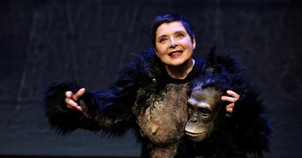 Isabella Rossellini in una foto del suo spettacolo, vestita da scimpanzé