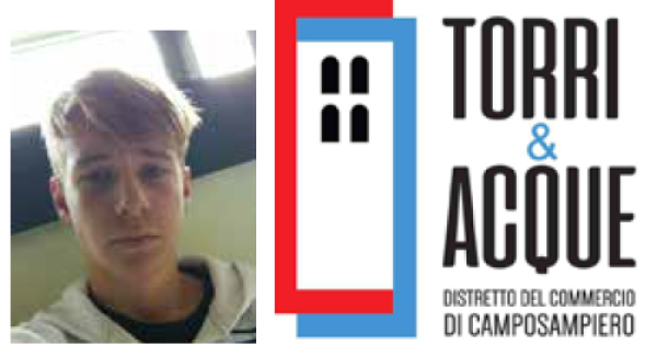 Si chiama Alex Rettore (nella foto) ed è uno studente della 4C dell’Itis Newton-Pertini il vincitore del concorso per la realizzazione del logo del nuovo Distretto del Commercio “Torri e Acque”