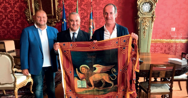 Il comandante Giuseppe Maraschio con l’assessore regionale Roberto Marcato e il presidente della Regione Luca Zaia