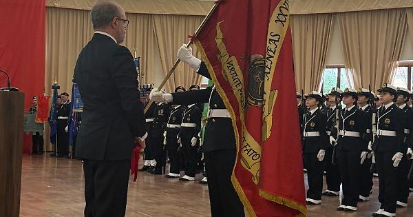 Uno dei momenti più significativi della cerimonia è stata la consegna del vessillo rosso del primo Corso, raffigurante Enea di spalle rivolto verso nuovi orizzonti. A consegnarlo, il padrino della cerimonia Francesco Businaro, ex allievo del Morosini, presidente Emerito dell’Associazione Nazionale Morosini e consigliere del Gruppo ANMI Monselice-Battaglia Terme.