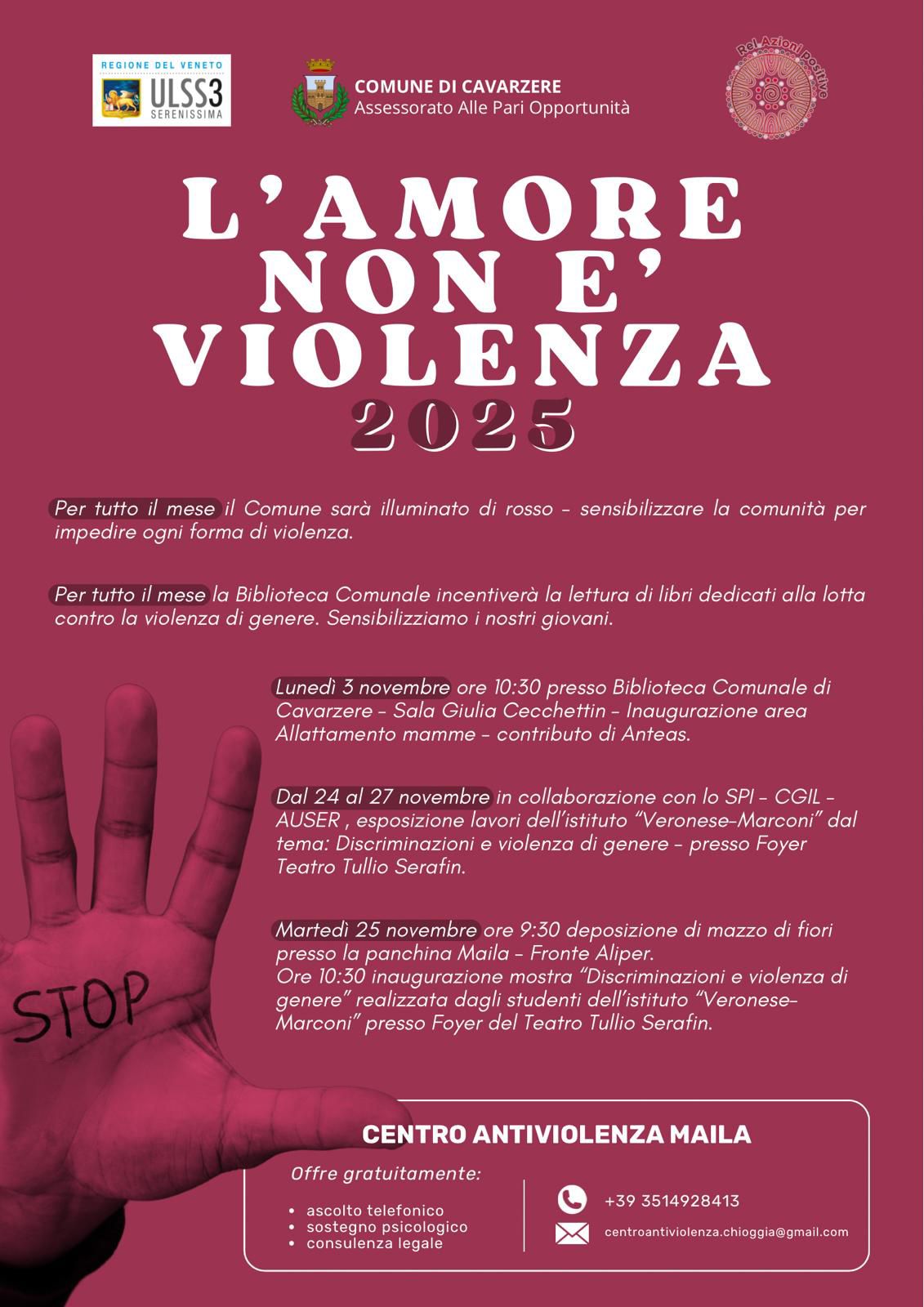 La cittadinanza è invitata a partecipare alle iniziative del mese, unite da un messaggio comune: “l’amore non è violenza.”