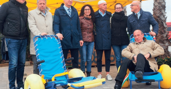 La consegna ufficiale è avvenuta lo scorso 14 aprile presso la sede Ascot. L’umanizzazione dei servizi qualifica ulteriormente il litorale La carrozzina da mare, nella foto a destra Boscol