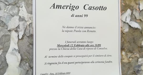 Scomparso il secondo dei fratelli Casotto, il sig. Amerigo, nato nell'ottobre del 1920. La fama dei fratelli Casotto, in merito alla loro attività imprenditoriale di via Campagnon dove hanno sempre lavorato assieme, è nota a tutta la provincia perchè con grande precisione ed una inventiva straordinaria, sapevano concretizzare con il tornio ogni soluzione ed ogni manufatto. Presso la loro bottega si sono formati molti giovani dell'epoca che poi hanno trasferito la loro manualità e competenza in altre aziende o nella loro. Erano esperti innovatori in tante cose (atomizzatori e altri attrezzi di meccanica agraria) e sono uscite dalla loro catena di smontaggio/montaggio decine e decine di carioche, approntate secondo le esigenze del cliente. Una pagina di storia imprenditoriale di Arre che si chiude definitivamente ora con la scomparsa dell'ultimo attore principale. La loro fantasia e competenza professionale nel settore della meccanica ha avuto grandi riconoscimenti in ambiti dove la meccanizzazione è stata lenta, ma inesorabile, come in agricoltura. Un ricordo affettuoso ad Amerigo che con la sua attività ha saputo portare lontano il nome, l'estro, il genio e l'operosità di Arre. La Comunità Civile ha voluto esprimere le sue più sentite condoglianze.