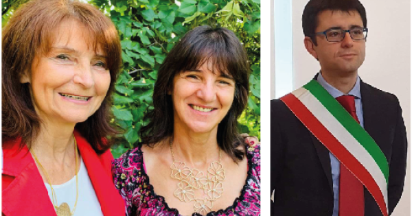 Il sindaco uscente Davide Moro, a sinistra, Catterina Paqualin con Stefania Contarin