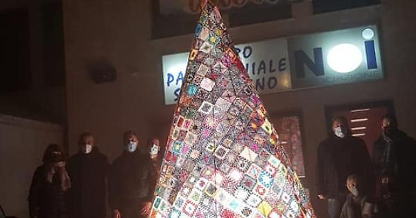 Acceso in questi giorni l’originale e coloratissimo albero di Natale realizzato all’uncinetto da alcune donne di Tribano.