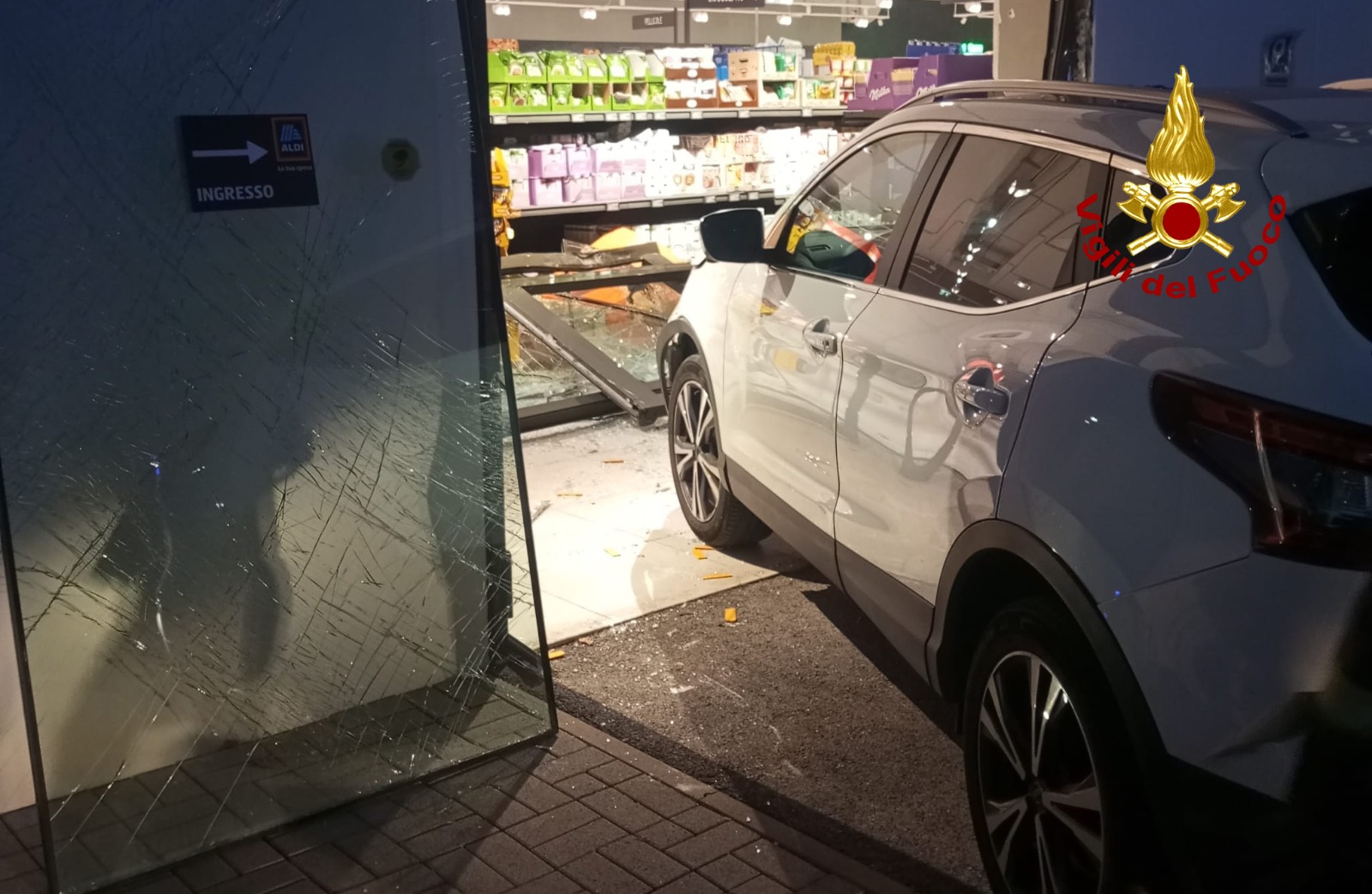 Un'auto è finita dentro il supermercato Aldì di Via Vittorio Veneto, sfondando la vetrata del negozio. È accaduto alle 16:30 di oggi, lunedì 2 dicembre, ma fortunatamente nessuno è rimasto ferito. La conducente del veicolo, una Nissan Qashqai, è uscita illesa dall'incidente, così come le persone che si trovavano all'interno del supermercato al momento del sinistro.