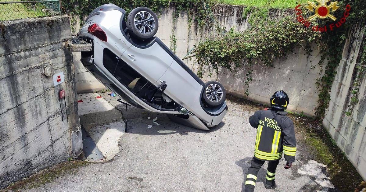 Intervento dei Vigili del fuoco nel primo pomeriggio di mercoledì 6 agosto a Domegge di Cadore (Belluno), dove un’auto è finita nella rampa di un garage in via San Rocco, ribaltandosi. A bordo del veicolo si trovavano due persone: il conducente e una donna.