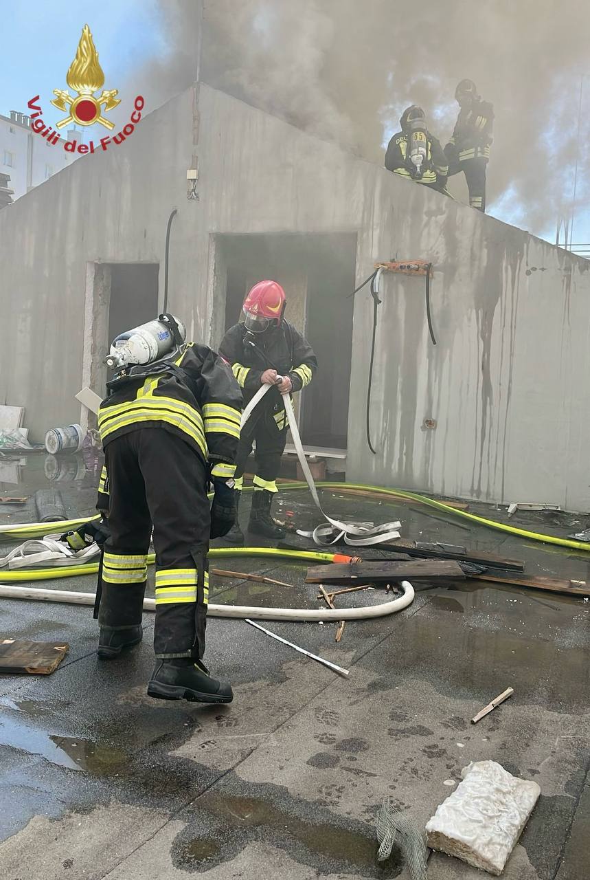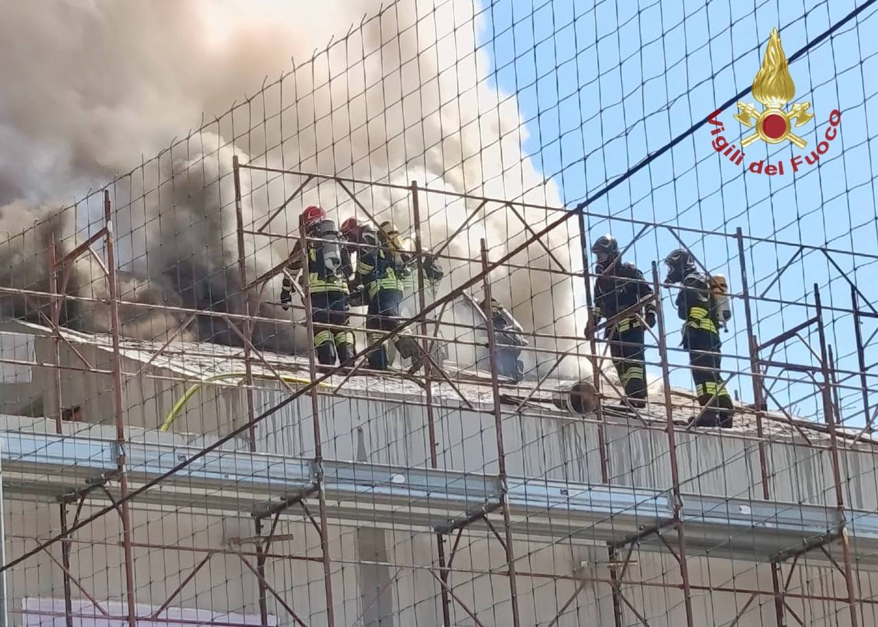 Per affrontare le fiamme sono state impiegate tre autopompe, due autobotti e un’autoscala, in un’operazione che ha richiesto un intenso coordinamento. Dopo ore di lavoro, l’incendio è stato posto sotto controllo e i pompieri hanno proseguito con lo spegnimento degli ultimi focolai.